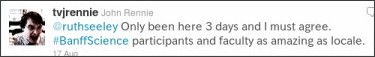 Oddly, a Twitter account for the program was created – and as of today, has tweeted exactly once, on August 18. The general Banff Centre Twitter account has provided some information, but has failed to recognize the #banffscience hashtag.
